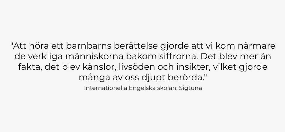 “Att höra ett barnbarns berättelse, eller en släkting till någon som var med, gjorde att vi kom närmare de verkliga människorna bakom siffrorna. Det blev mer än bara fakta, det blev känslor, livsöden och insikter, vilket gjorde många av oss djupt berörda. “